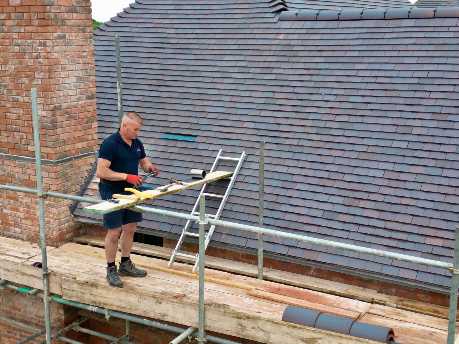 Sackett Roofing Ltd will strip your existing roof, fit new breathable felt and timber laths, new lead (where required), fit your choice of slate or tile, dry hip and ridge tiles or use new dry ridge systems.